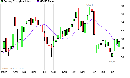 Mit dem Anstieg auf 60,14 EUR hat die W.R. Berkley-Aktie am 17.02.2026 die 50-Tage-Linie nach oben gekreuzt.
