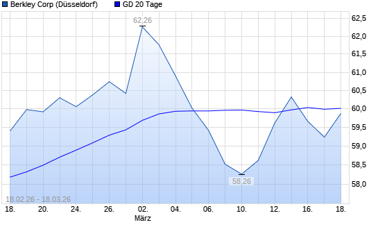 Mit dem Rücksetzer auf 59,40 EUR hat die W.R. Berkley-Aktie am 17.03.2026 die 20-Tage-Linie nach unten gekreuzt.