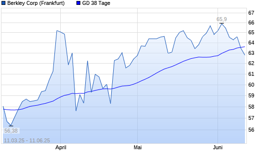 Mit dem Rücksetzer auf 63,46 EUR hat die W.R. Berkley-Aktie am 10.06.2025 die 38-Tage-Linie nach unten gekreuzt.