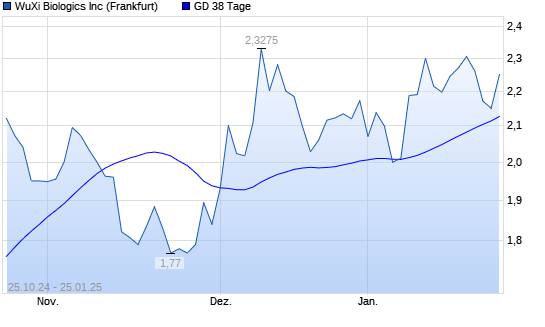 Mit dem Anstieg auf 2,25 EUR hat die WUXI BIOLOGICS-Aktie am 24.01.2025 die 38-Tage-Linie nach oben gekreuzt.