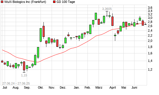 Mit dem Rücksetzer auf 2,72 EUR hat die WUXI BIOLOGICS-Aktie am 26.06.2025 die 100-Tage-Linie nach unten gekreuzt.