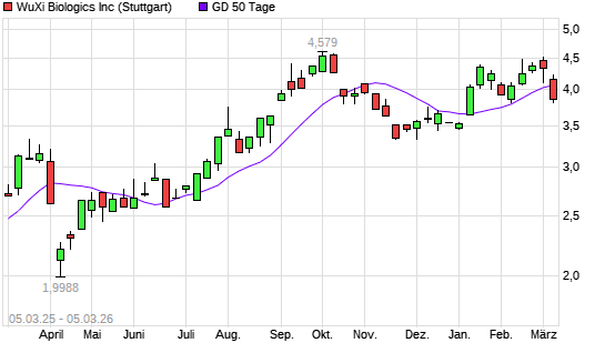 Mit dem Rücksetzer auf 3,90 EUR hat die WUXI BIOLOGICS-Aktie am 04.03.2026 die 50-Tage-Linie nach unten gekreuzt.