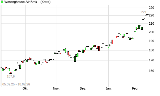 Mit dem Anstieg auf 219,30 EUR hat die Wabtec-Aktie (ISIN US9297401088) am 17.02.2026 ein neues All-Time-High erreicht und damit den Kurs vom 16.02.2026 eingestellt.
