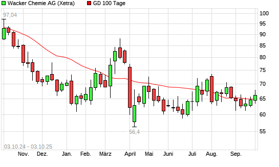 Mit dem Anstieg auf 66,25 EUR hat die Wacker Chemie-Aktie am 02.10.2025 die 100-Tage-Linie nach oben gekreuzt.