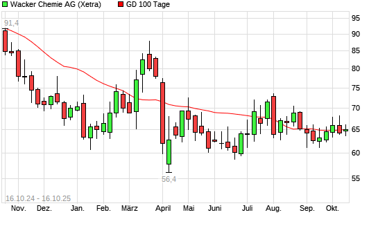 Mit dem Anstieg auf 65,70 EUR hat die Wacker Chemie-Aktie am 15.10.2025 die 100-Tage-Linie nach oben gekreuzt.