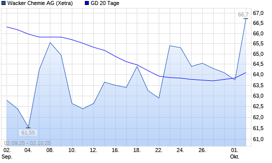 Mit dem Rücksetzer auf 63,70 EUR hat die Wacker Chemie-Aktie am 01.10.2025 die 20-Tage-Linie nach unten gekreuzt.