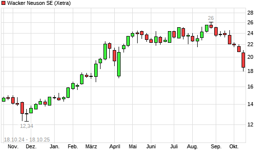 Mit dem Rücksetzer auf 18,42 EUR hat die Wacker Neuson-Aktie (ISIN DE000WACK012) am 17.10.2025 ein neues 6-Monats-Tief erreicht und damit den Kurs vom 16.10.2025 eingestellt.