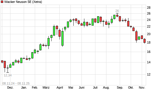 Mit dem Rücksetzer auf 17,90 EUR hat die Wacker Neuson-Aktie (ISIN DE000WACK012) am 07.11.2025 ein neues 6-Monats-Tief erreicht und damit den Kurs vom 06.11.2025 eingestellt.