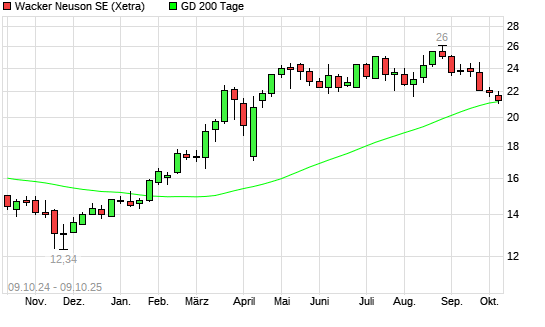 Mit dem Rücksetzer auf 21,20 EUR hat die Wacker Neuson-Aktie am 08.10.2025 die 200-Tage-Linie nach unten gekreuzt.Die Wacker Neuson-Aktie befand sich seit dem 21.01.2025 im langfristigen ...weiterlesen
