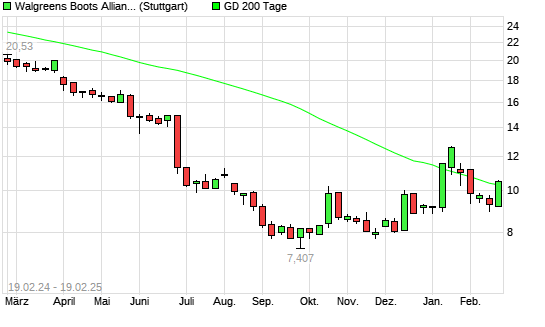 Mit dem Anstieg auf 10,26 EUR hat die Walgreens Boots Alliance-Aktie am 18.02.2025 die 200-Tage-Linie nach oben gekreuzt.