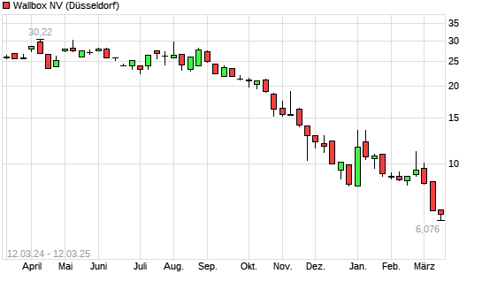 Mit dem Rücksetzer auf 0,30 EUR hat die Wallbox-Aktie (ISIN NL0015000M91) am 11.03.2025 ein neues All-Time-Low erreicht und damit den Kurs vom 19.12.2024 eingestellt.
