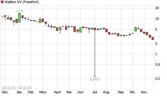 Mit dem Rücksetzer auf 2,58 EUR hat die Wallbox-Aktie (ISIN NL0015002J03) am 21.11.2025 ein neues All-Time-Low erreicht und damit den Kurs vom 19.11.2025 eingestellt.