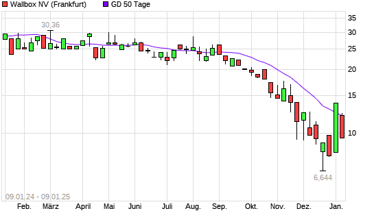 Mit dem Rücksetzer auf 0,55 EUR hat die Wallbox-Aktie am 08.01.2025 die 50-Tage-Linie nach unten gekreuzt.