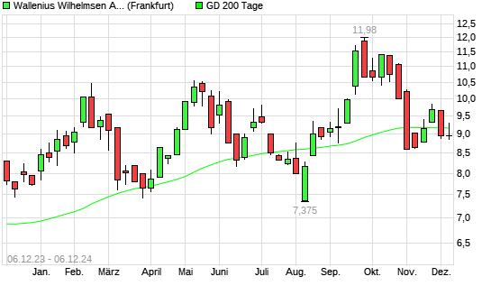 Mit dem Rücksetzer auf 9,14 EUR hat die Wallenius Wilhelmsen-Aktie am 05.12.2024 die 200-Tage-Linie nach unten gekreuzt.