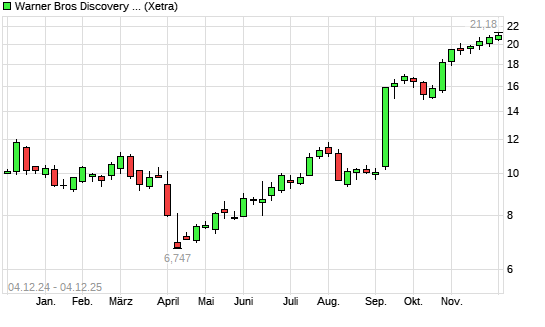 Mit dem Anstieg auf 20,98 EUR hat die Warner Bros Discovery-Aktie (ISIN US9344231041) am 03.12.2025 ein neues 3-Jahres-Hoch erreicht und damit den Kurs vom 02.12.2025 eingestellt.