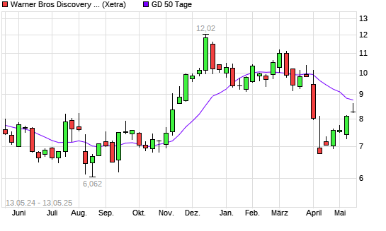 Mit dem Anstieg auf 8,45 EUR hat die Warner Bros Discovery-Aktie am 12.05.2025 die 50-Tage-Linie nach oben gekreuzt.