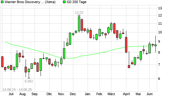 Mit dem Rücksetzer auf 8,61 EUR hat die Warner Bros Discovery-Aktie am 13.06.2025 die 200-Tage-Linie nach unten gekreuzt.