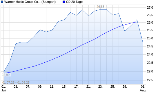 Mit dem Anstieg auf 26,20 EUR hat die Warner Music Group-Aktie am 31.07.2025 die 20-Tage-Linie nach oben gekreuzt.