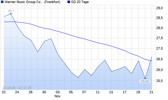 Mit dem Anstieg auf 26,62 EUR hat die Warner Music Group-Aktie am 21.11.2025 die 20-Tage-Linie nach oben gekreuzt.