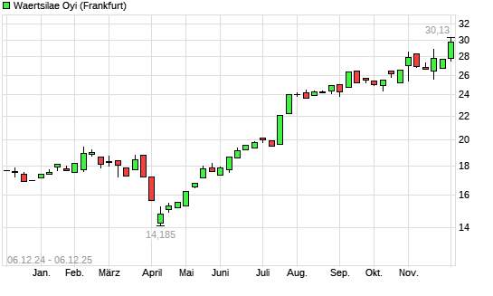 Mit dem Anstieg auf 29,72 EUR hat die Wartsila B-Aktie (ISIN FI0009003727) am 05.12.2025 ein neues All-Time-High erreicht und damit den Kurs vom 04.12.2025 eingestellt.