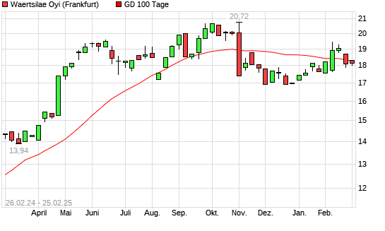 Mit dem Anstieg auf 18,32 EUR hat die Wartsila B-Aktie am 24.02.2025 die 100-Tage-Linie nach oben gekreuzt.