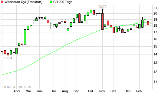 Mit dem Anstieg auf 18,70 EUR hat die Wartsila B-Aktie am 27.02.2025 die 200-Tage-Linie nach oben gekreuzt.
