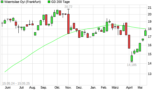 Mit dem Anstieg auf 18,02 EUR hat die Wartsila B-Aktie am 14.05.2025 die 200-Tage-Linie nach oben gekreuzt.