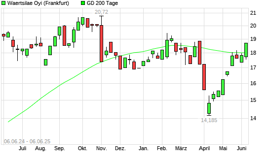 Mit dem Anstieg auf 18,24 EUR hat die Wartsila B-Aktie am 05.06.2025 die 200-Tage-Linie nach oben gekreuzt.