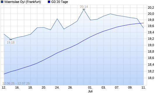 Mit dem Rücksetzer auf 19,53 EUR hat die Wartsila B-Aktie am 11.07.2025 die 20-Tage-Linie nach unten gekreuzt.