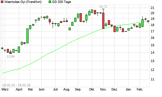 Mit dem Rücksetzer auf 18,26 EUR hat die Wartsila B-Aktie am 18.02.2025 die 200-Tage-Linie nach unten gekreuzt.