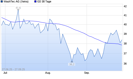 Mit dem Anstieg auf 38,20 EUR hat die WashTec-Aktie am 26.09.2025 die 38-Tage-Linie nach oben gekreuzt.