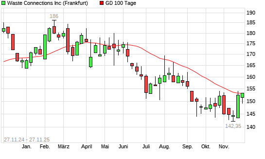 Mit dem Anstieg auf 153,35 EUR hat die Waste Connections-Aktie am 26.11.2025 die 100-Tage-Linie nach oben gekreuzt.