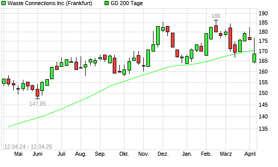 Mit dem Rücksetzer auf 168,70 EUR hat die Waste Connections-Aktie am 11.04.2025 die 200-Tage-Linie nach unten gekreuzt.