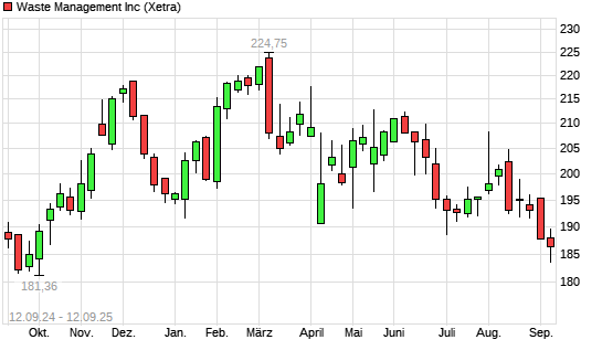 Mit dem Rücksetzer auf 184,66 EUR hat die Waste Management-Aktie (ISIN US94106L1098) am 11.09.2025 ein neues 6-Monats-Tief erreicht und damit den Kurs vom 10.09.2025 eingestellt.