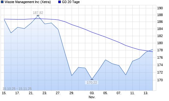 Mit dem Anstieg auf 181,22 EUR hat die Waste Management-Aktie am 14.11.2025 die 20-Tage-Linie nach oben gekreuzt.