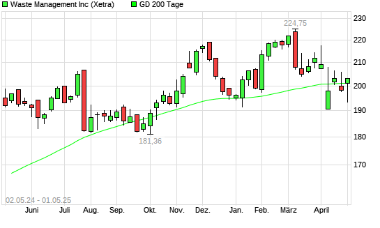 Mit dem Anstieg auf 203,40 EUR hat die Waste Management-Aktie am 30.04.2025 die 200-Tage-Linie nach oben gekreuzt.