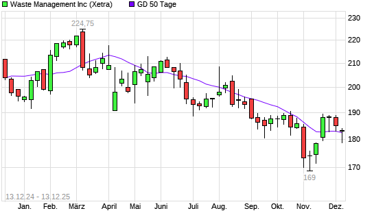 Mit dem Anstieg auf 183,34 EUR hat die Waste Management-Aktie am 12.12.2025 die 50-Tage-Linie nach oben gekreuzt.