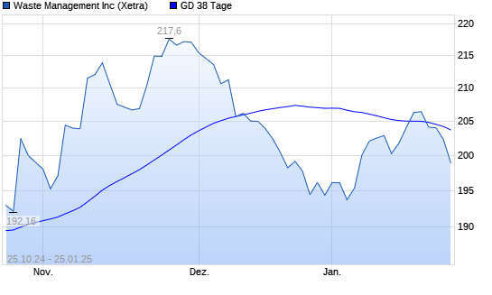 Mit dem Rücksetzer auf 199,36 EUR hat die Waste Management-Aktie am 24.01.2025 die 38-Tage-Linie nach unten gekreuzt.
