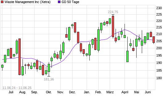 Mit dem Rücksetzer auf 205,50 EUR hat die Waste Management-Aktie am 10.06.2025 die 50-Tage-Linie nach unten gekreuzt.