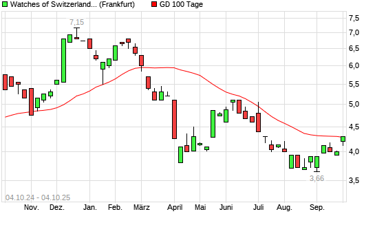 Mit dem Anstieg auf 4,44 EUR hat die Watches of Switzerland-Aktie am 03.10.2025 die 100-Tage-Linie nach oben gekreuzt.