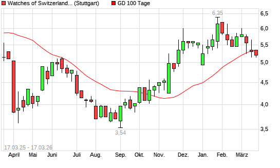 Mit dem Rücksetzer auf 5,40 EUR hat die Watches of Switzerland-Aktie am 16.03.2026 die 100-Tage-Linie nach unten gekreuzt.