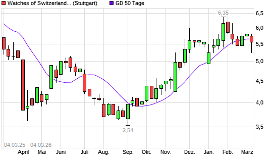 Mit dem Rücksetzer auf 5,45 EUR hat die Watches of Switzerland-Aktie am 03.03.2026 die 50-Tage-Linie nach unten gekreuzt.