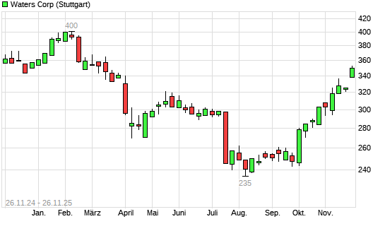 Mit dem Anstieg auf 342,10 EUR hat die Waters-Aktie (ISIN US9418481035) am 25.11.2025 ein neues 6-Monats-Hoch erreicht und damit den Kurs vom 24.11.2025 eingestellt.