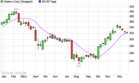 Mit dem Anstieg auf 320,50 EUR hat die Waters-Aktie am 22.12.2025 die 50-Tage-Linie nach oben gekreuzt.Die Waters-Aktie befindet sich seit dem 05.11.2025 im langfristigen Aufwärtstrend und hat ...weiterlesen