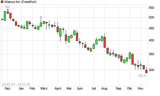 Mit dem Rücksetzer auf 293,40 EUR hat die Watsco A-Aktie (ISIN US9426222009) am 14.11.2025 ein neues 12-Monats-Tief erreicht und damit den Kurs vom 13.11.2025 eingestellt.