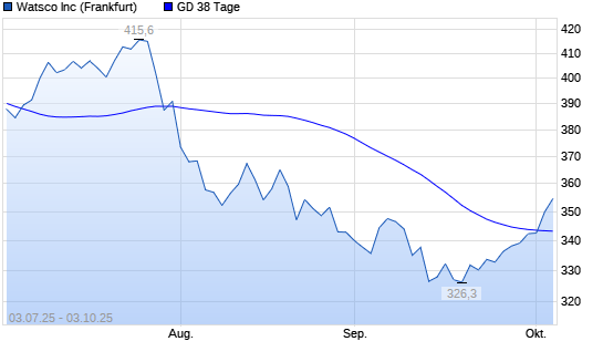 Mit dem Anstieg auf 350,00 EUR hat die Watsco A-Aktie am 02.10.2025 die 38-Tage-Linie nach oben gekreuzt.