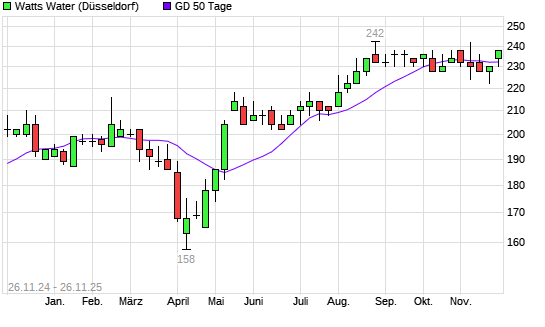 Mit dem Anstieg auf 238,00 EUR hat die Watts Water-Aktie am 25.11.2025 die 50-Tage-Linie nach oben gekreuzt.