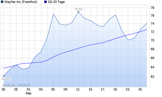 Mit dem Anstieg auf 72,56 EUR hat die Wayfair A-Aktie am 25.09.2025 die 20-Tage-Linie nach oben gekreuzt.