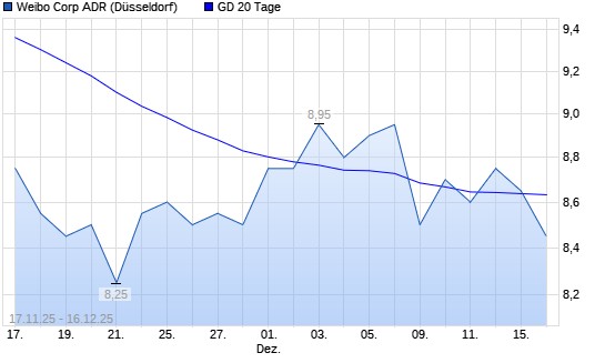 Mit dem Anstieg auf 8,70 EUR hat die Weibo Corporation ADR-Aktie am 15.12.2025 die 20-Tage-Linie nach oben gekreuzt.