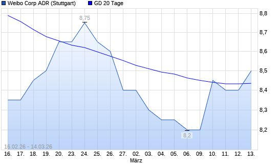 Mit dem Anstieg auf 8,45 EUR hat die Weibo Corporation ADR-Aktie am 13.03.2026 die 20-Tage-Linie nach oben gekreuzt.